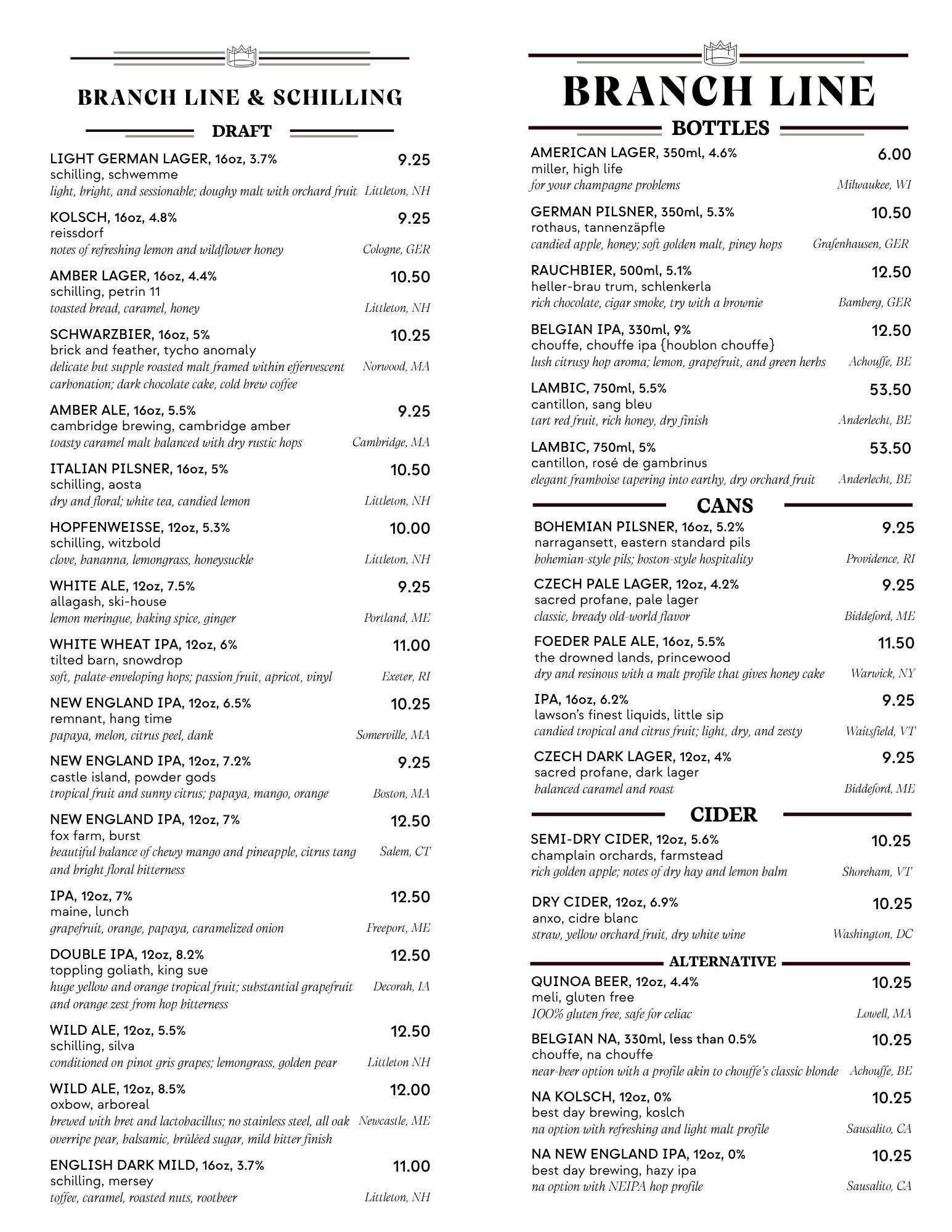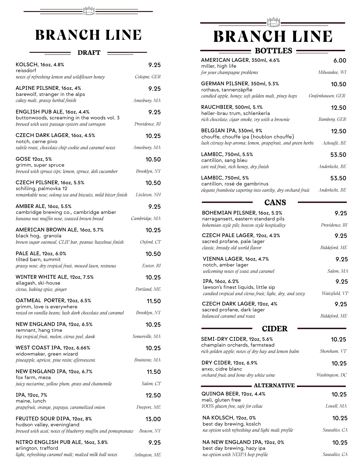 Our Menus